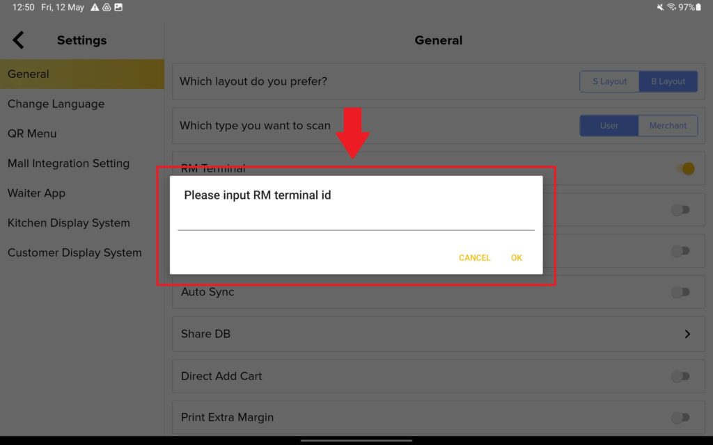 2. After toggling on the “RM Terminal“, you need to get the terminal id from the Revenue Monster website.