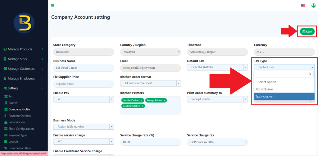 3. From the page choose “Tax Type”, it will give 2 options, you need to choose one and after choosing, you need to click to the “Save” icon to save the result.