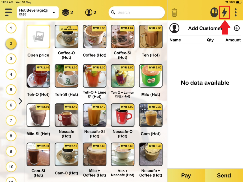 1. When you open your BIGPOS Pro, Lite, or Waiter apps. You will see a lightning logo on the top right and press it.