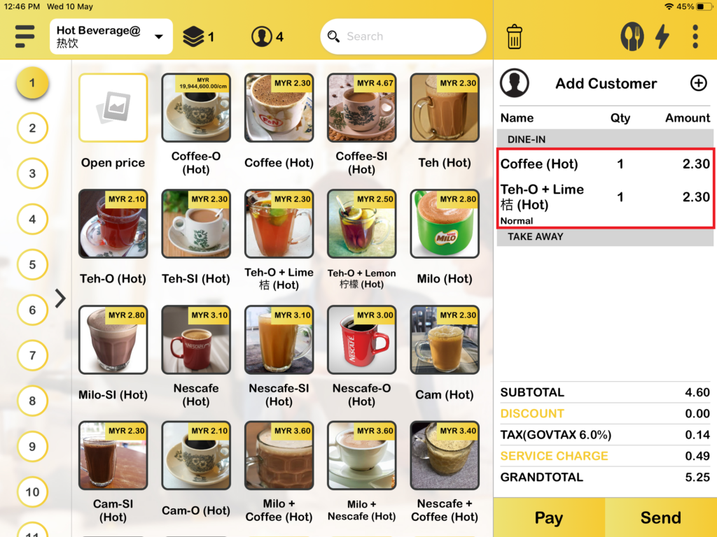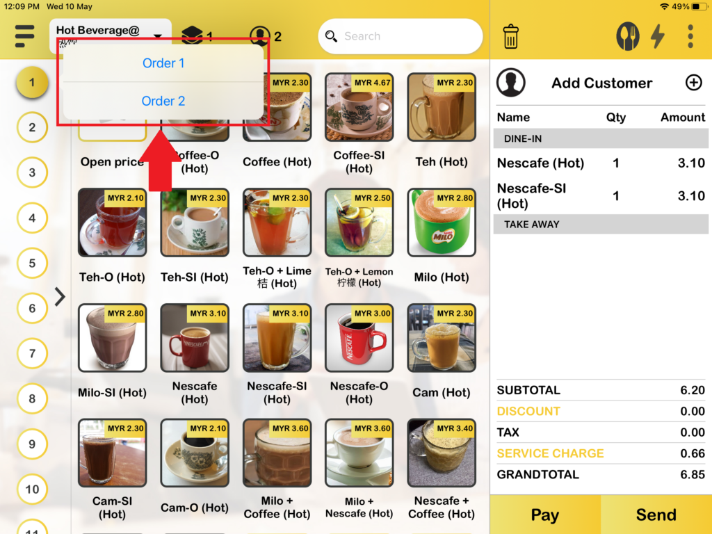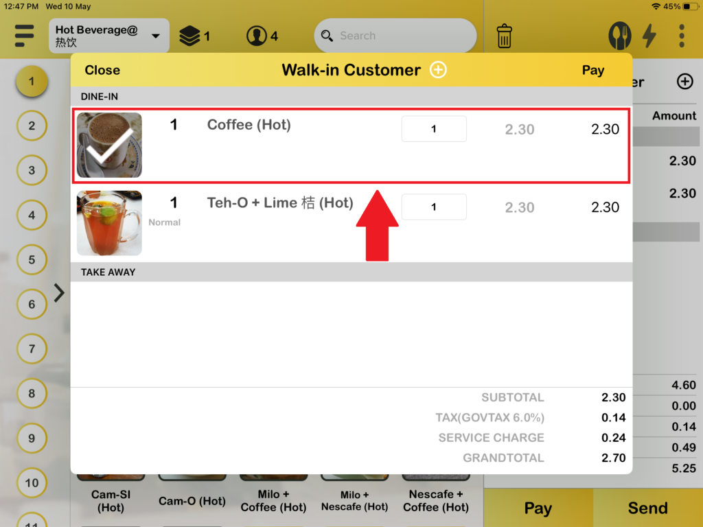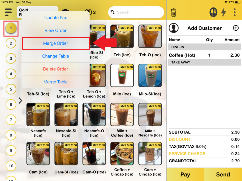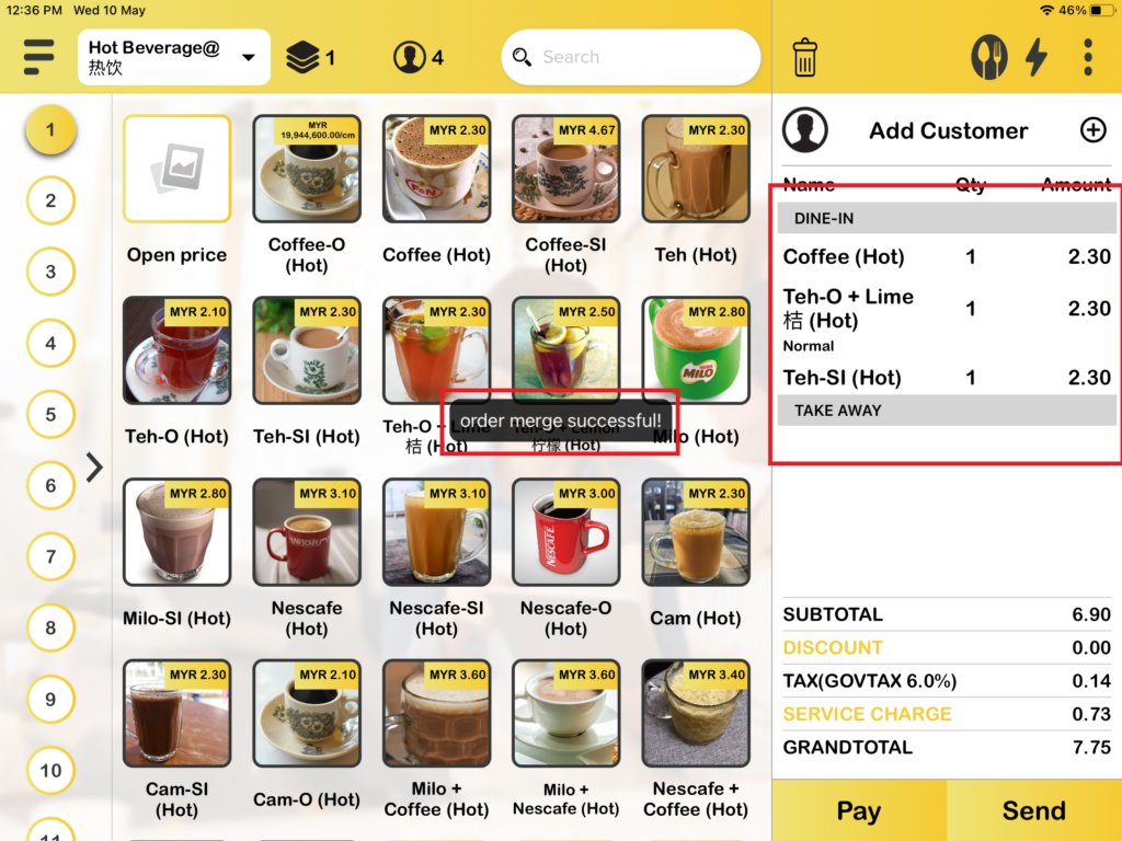3. Press the “Merge Order” option, and 2 orders in the same table will be merged successfully.
