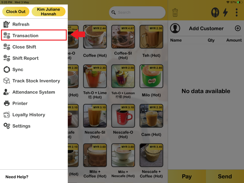 2. Then press “Transaction“.