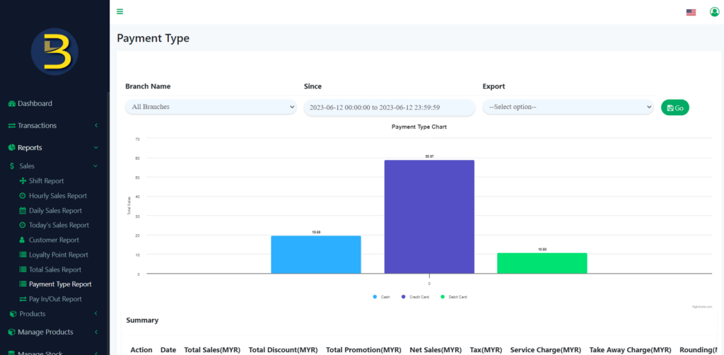 - Then, you click on the “Sales” button to expand to different types of reports.
