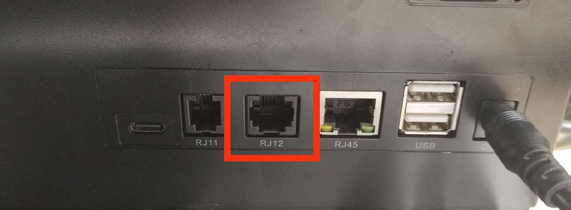 Connect cash drawer cable in RJ12 port