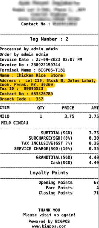 Note: The invoice changes with settings such as Web Admin and Bigpos Pro can be applied to Bigpos Lite, Waiter and QR Menu Order.