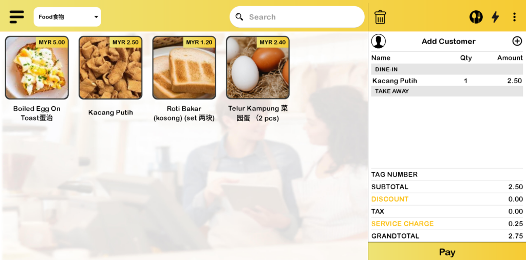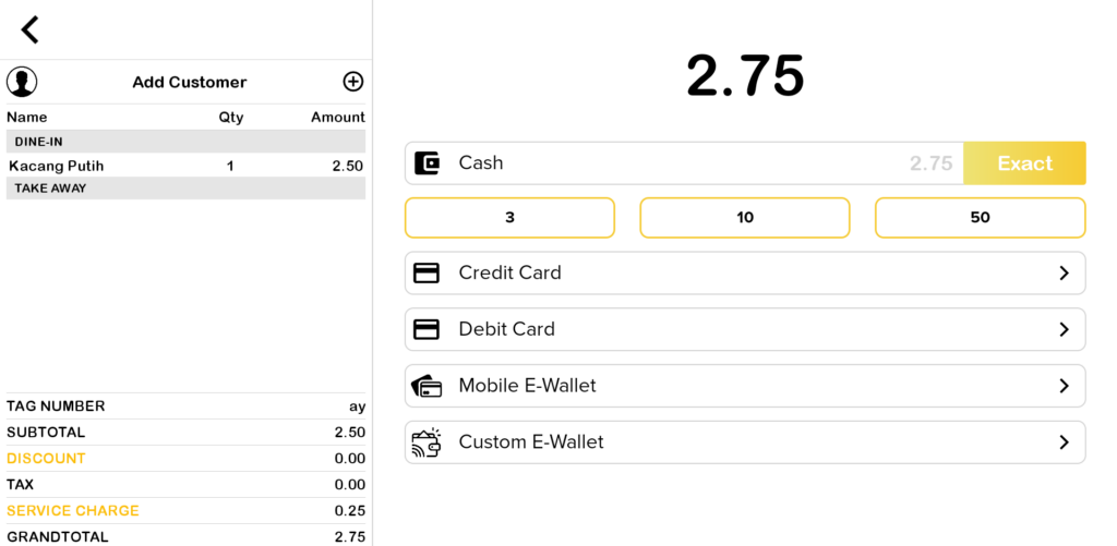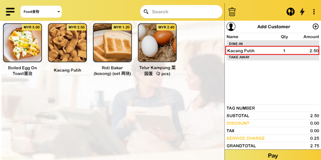 7. Proceed to make payment for the product that remains in the cart. For business mode “Table Number”, user can click “Send” button and proceed to click “Pay” button.