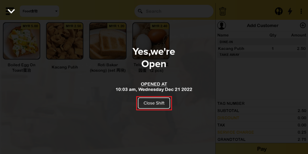 2. After “KEEP” is chosen, the page will be directed as shown below. Click “Close Shift”.
