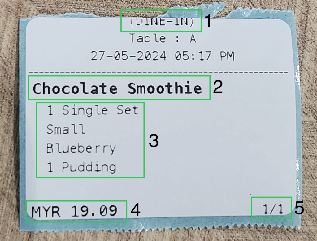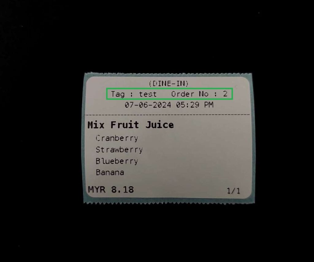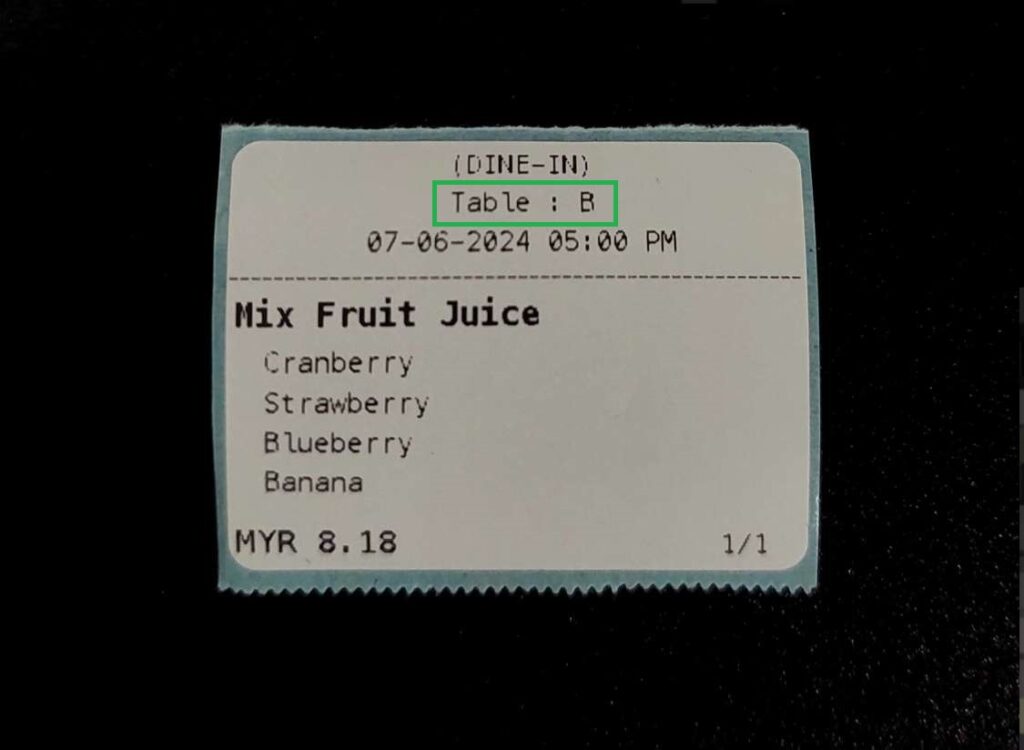 Based on the example given above, Chocolate Smoothie label printed in LABEL PRINTER while Smoked Duck Aglio Olio order sheet printed in LAN PRINTER. Order Summary and Receipt also printed in LAN PRINTER.