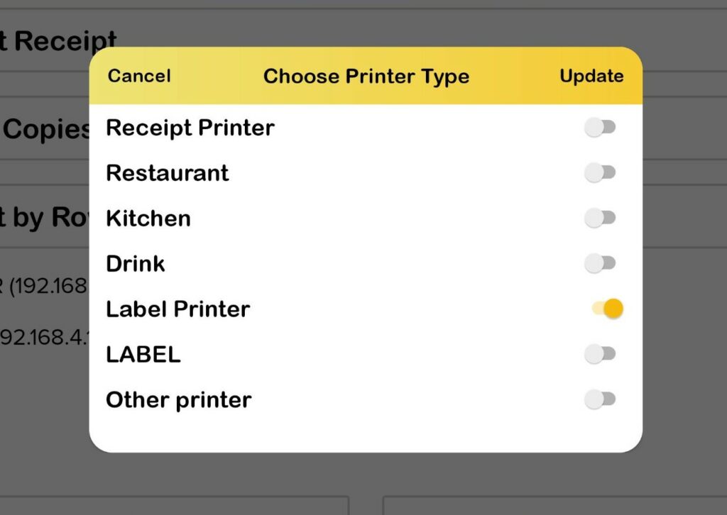 - On the app side, add printer option “LABEL PRINTER” and toggle on “Label Printer”