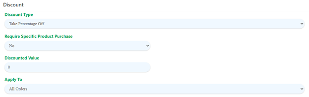 - Within the Create Promotion page or Update Promotion page, search for the Discount subsection.