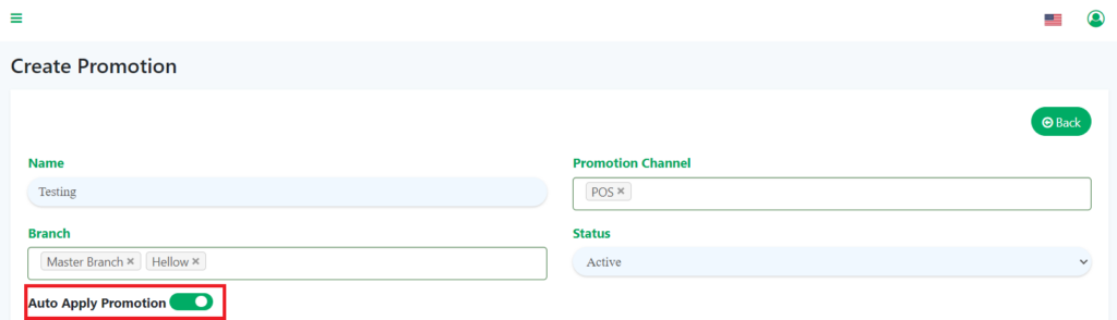 - User can enabling whether to Auto Apply Promotion or Manual Apply Promotion. See the example in the red box. Those buttons can toggle Auto Apply Promotion on or off.