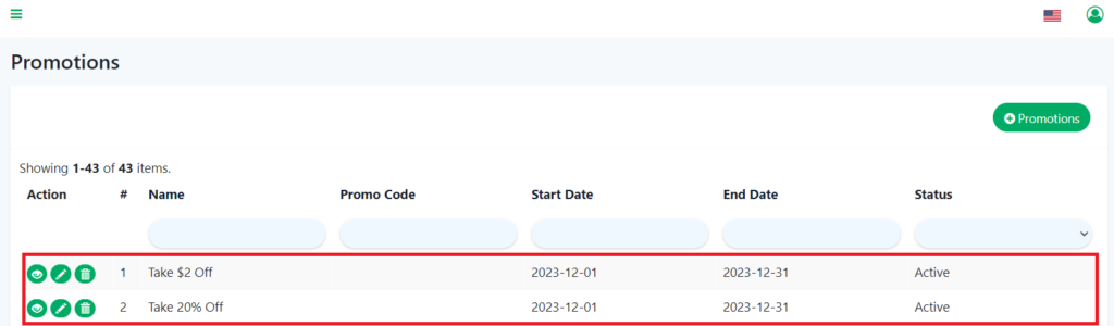 - Go to the Web Admin > Click the “Promotions” > Press the subcategories “Manage Promotions“.