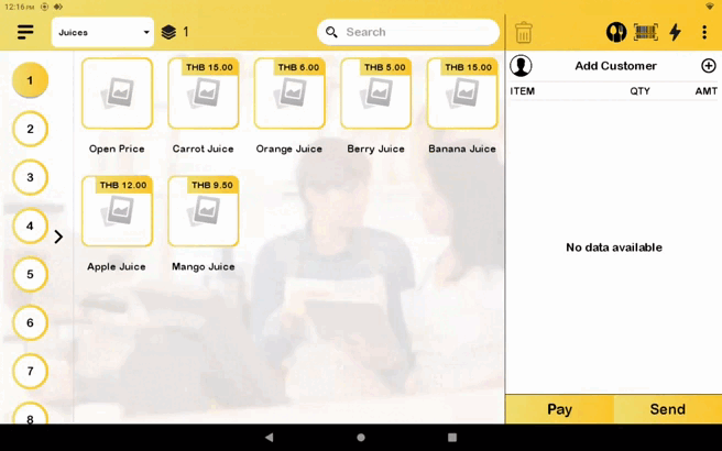 - The item promotion is manually applied by clicking on the three dots button, then pressing the Item Promotion button, and selecting the promotion that want to apply.