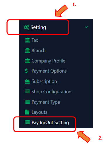 To enter ‘Pay In/Out Setting’ main page, follow the following steps:
