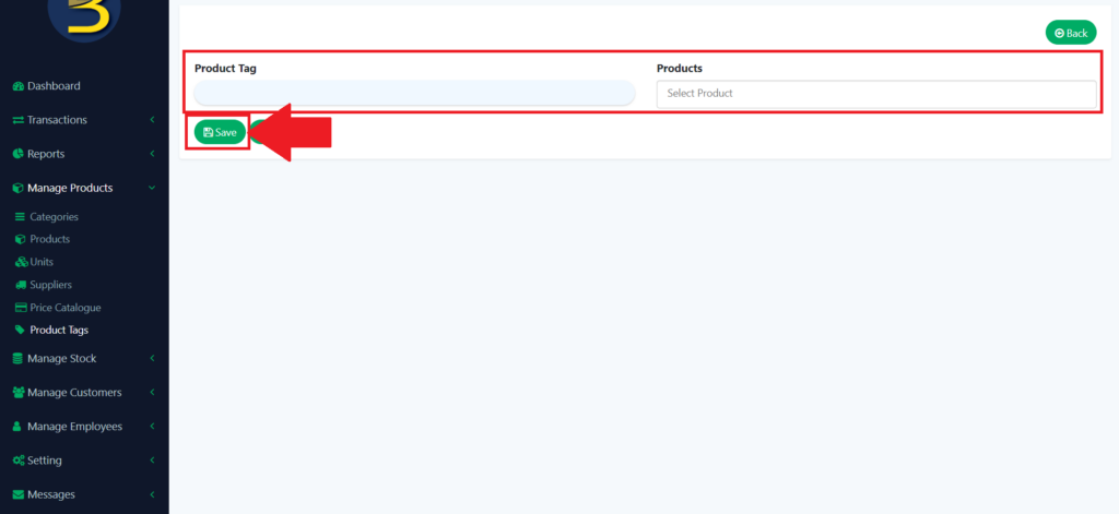 4. Fill in the detail of the product tag and then click on the “Save” icon button to save the product tag.