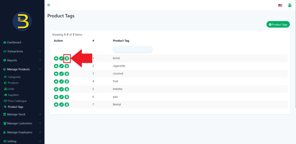 7. To delete certain product tags, you need to click on the dustbin icon to delete.
