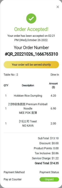 Utilizing the QR Menu platform, order notifications enable businesses to update customers on the status of their orders. These notifications messages allow customers to check the status of their orders and confirm whether these orders have been accepted. They can also be notified if a payment processing error results in an order rejection status.