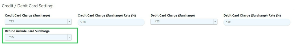 - Refund include Card Surcharge YES (Default) = Refund transaction INCLUDE Card Charge.