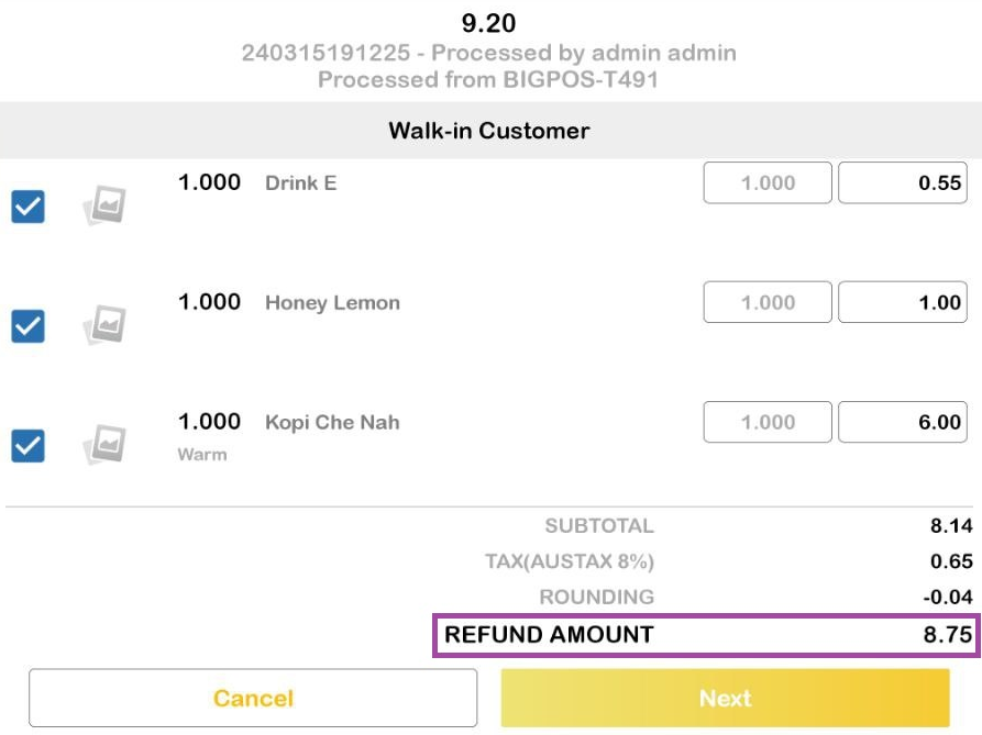 - Refund without card surcharge (card-cash) > Show paid amount (include card charge)