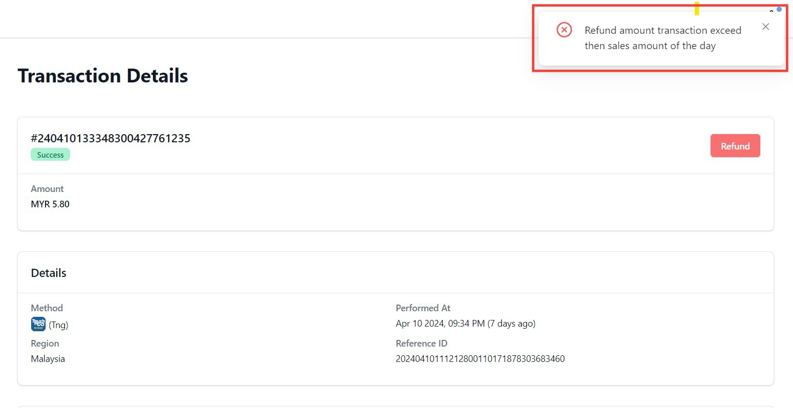 - If refund next day, need to make sure daily e-wallet transaction sufficient , as example below :