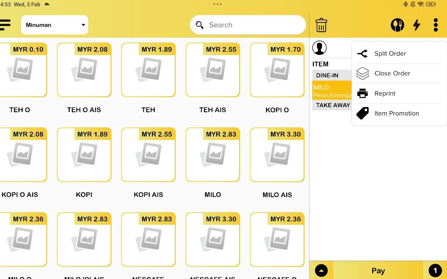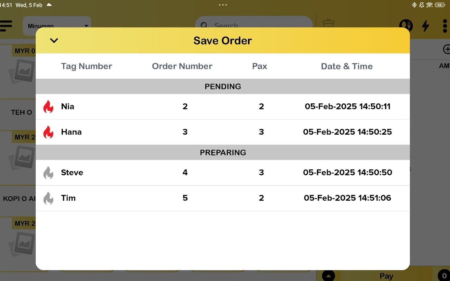 - Examples of one table having more than 1 order is 3 where Tag Number/Order Number will be displayed when the Tag Number is enabled in the Setting.