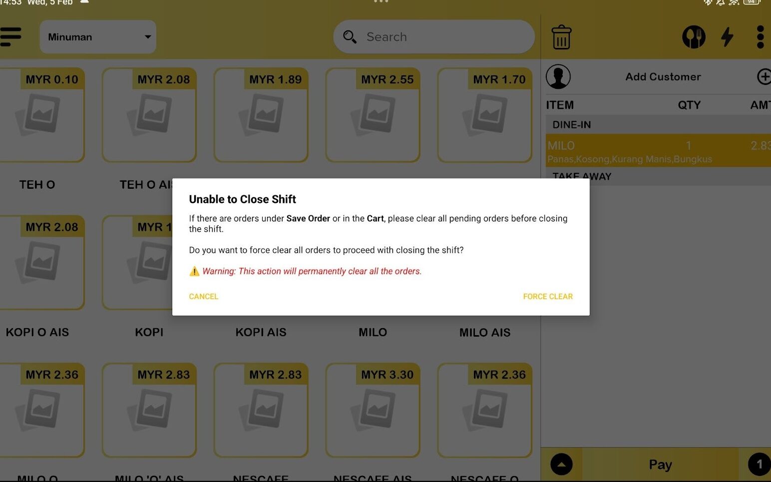 - Queue No (Queue Mode) and Order Number (Tag Mode) will reset every time open new shift except QR Order.