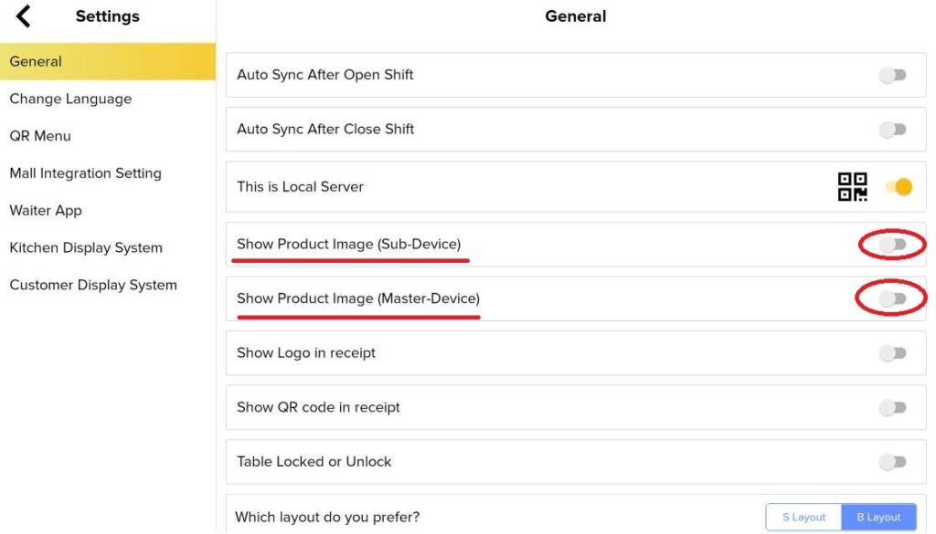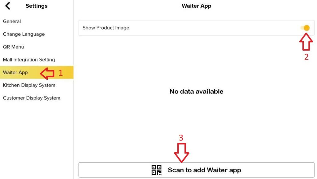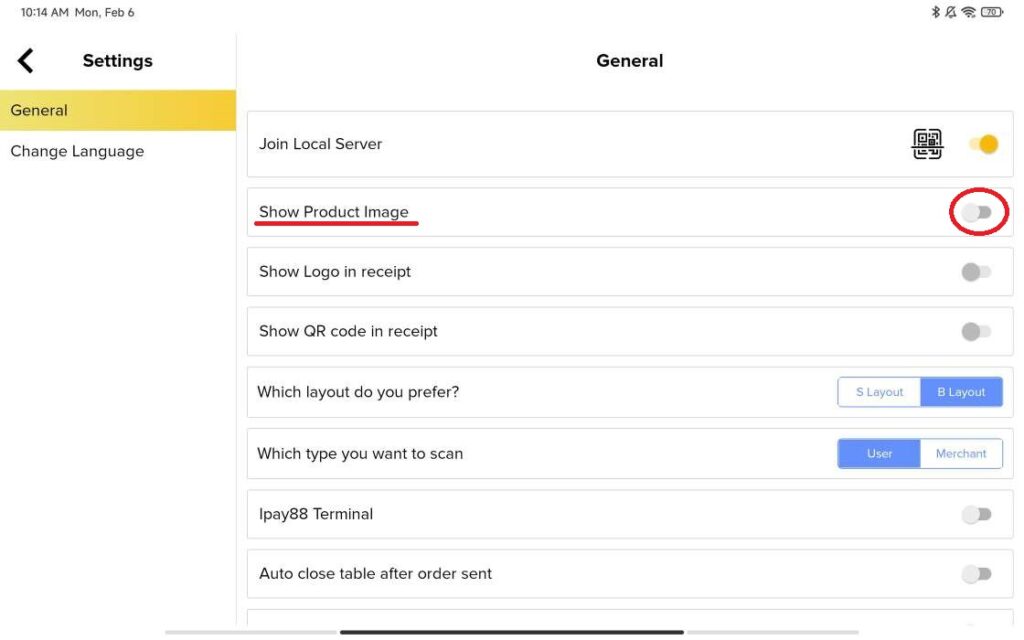 5. If user prefer to not display the images in Waiter Apps. Go to Setting, user can toggle off with the options.