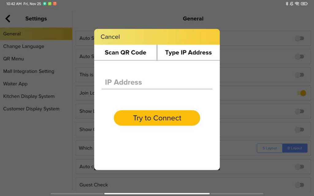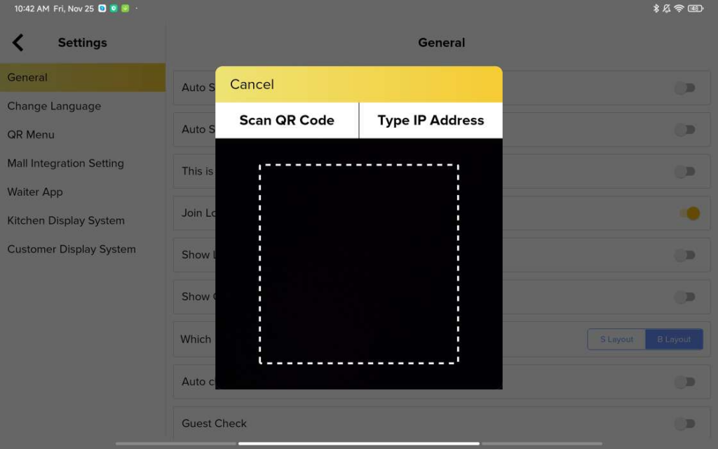 Using a master device and a sub device, this local server connection is made. The device becomes a master device by turning on the local server feature; otherwise, if the device joins the local server, it becomes a sub device. This section introduces the Local Server Connection feature in BIG POS App (BIG POS Pro only).