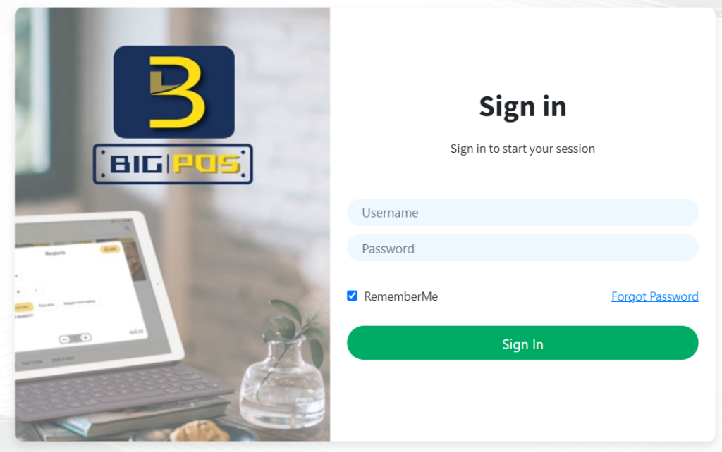 Sign In allows users to enter into BIG POS Web Admin and BIG POS Pro/lite. This section introduces how to Sign In in the BIG POS Web Admin and App.