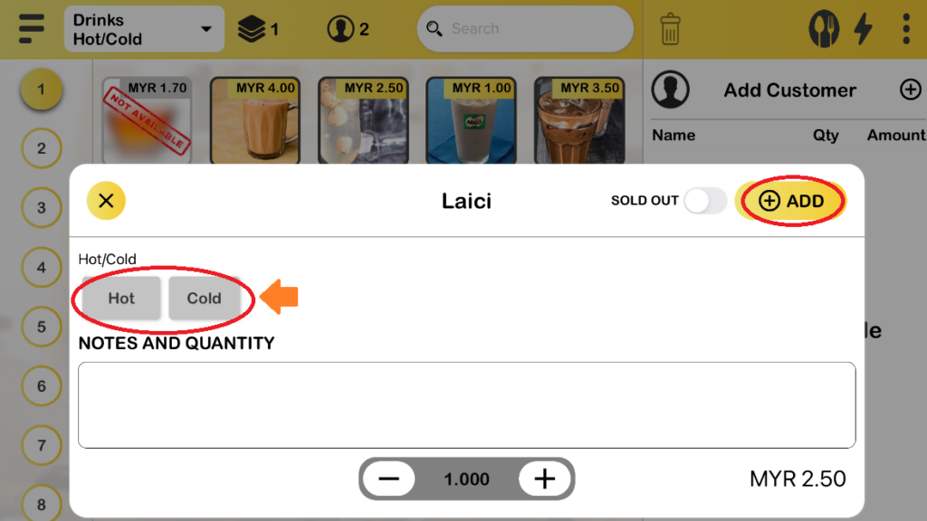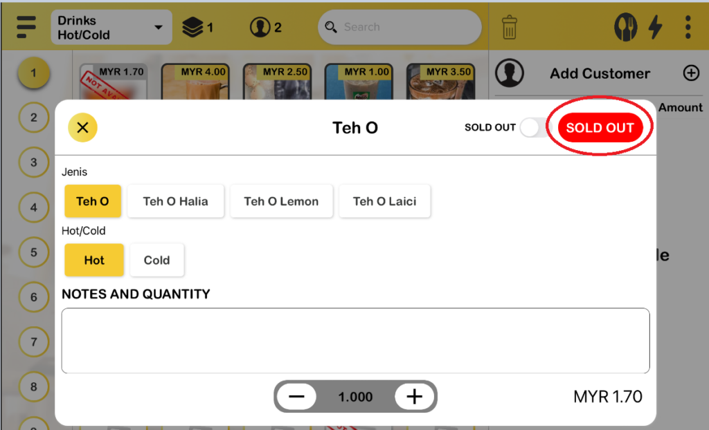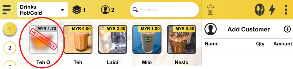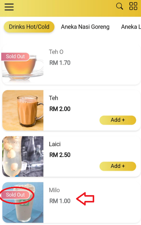 2. Customers who have scanned the QR menu, he/she unable to add Milo to the cart since it is sold out.