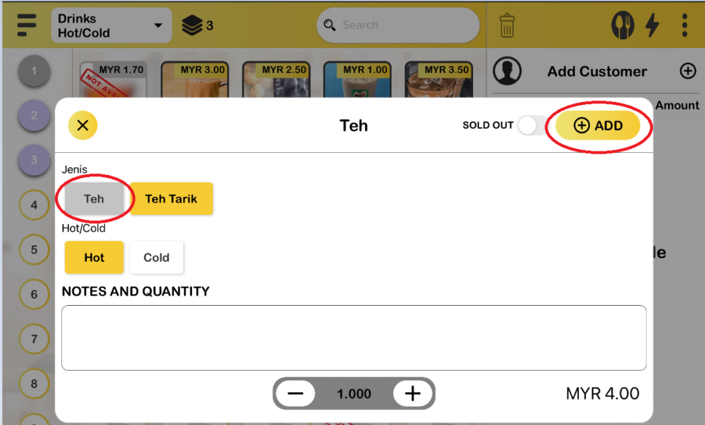 3. “Teh O” product is unable to be added to the cart since the “Add” button is changed to “SOLD OUT”.
