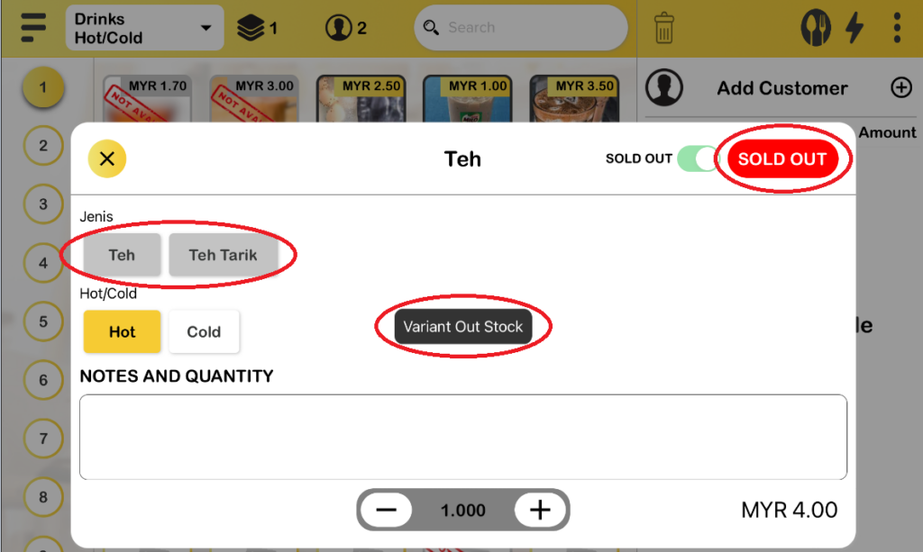 Sold out is defined as having all available items have been completely sold, especially in advance. When there is no more stock available, the term “Sold Out” will be used. This section elaborates on how to use Sold Out Function. The sold-out function in BIGPOS can be segmented into three categories, which are: