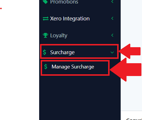 You need to go to the left to look for the “Surcharge” to expand and then click on the “Manage Surcharge” to redirect you to the surcharge page.