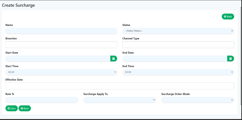 - Select the branch to which they want to apply this surcharge.