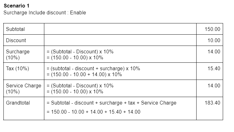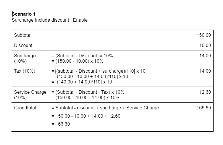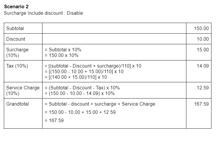 (Default = Disable). - For other countries, the Surcharge includes/exclude discount.