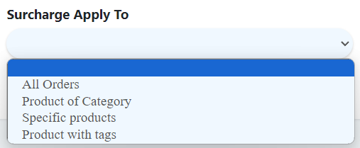 - Surcharge apply to: Product of category