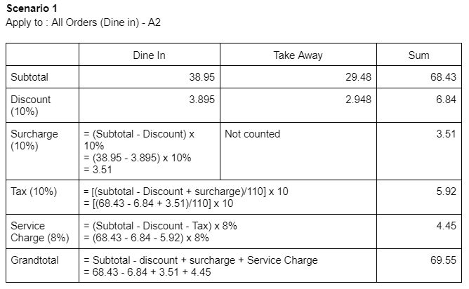 - Surcharge Order Mode: Dine in