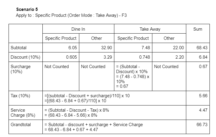 i) Surcharge applies to ‘Specific Product’ with the order mode applied for ‘Take Away’