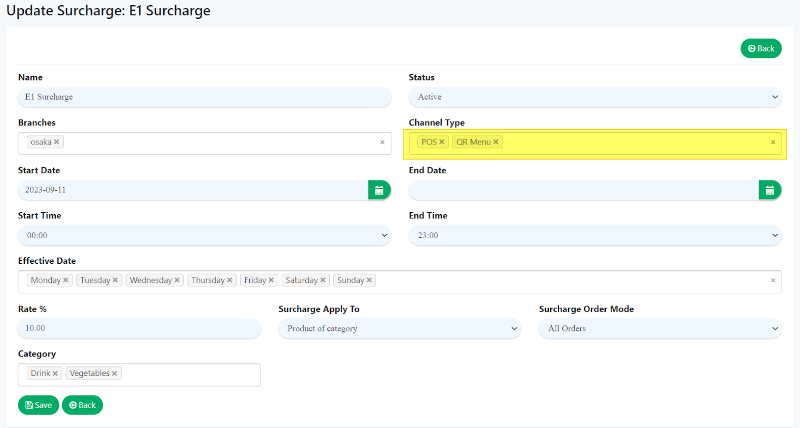 2. In the “Channel Type” section, make sure to choose ‘QR Menu‘, this way, the surcharge will be applied when ordering via QR Menu.