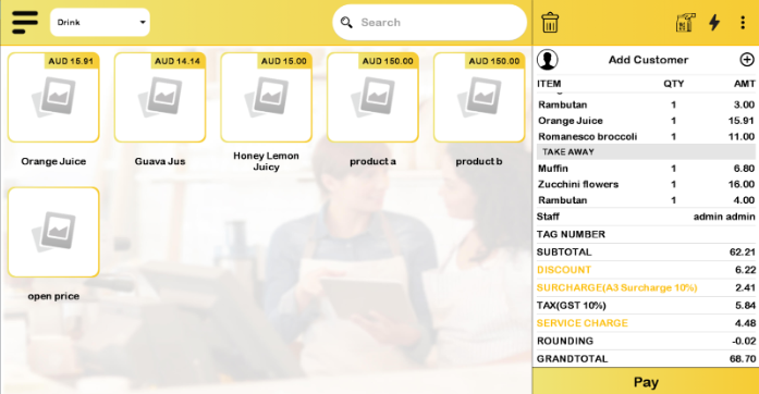 - Enable and disable the button for a surcharge as the user can decide whether they want to have a surcharge fee for their business or not.