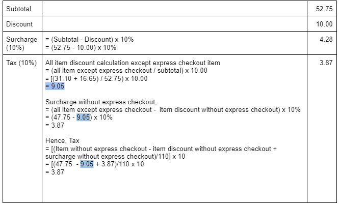 3. The accompanying figure below shows the application of the surcharge to category products with a detailed calculation.