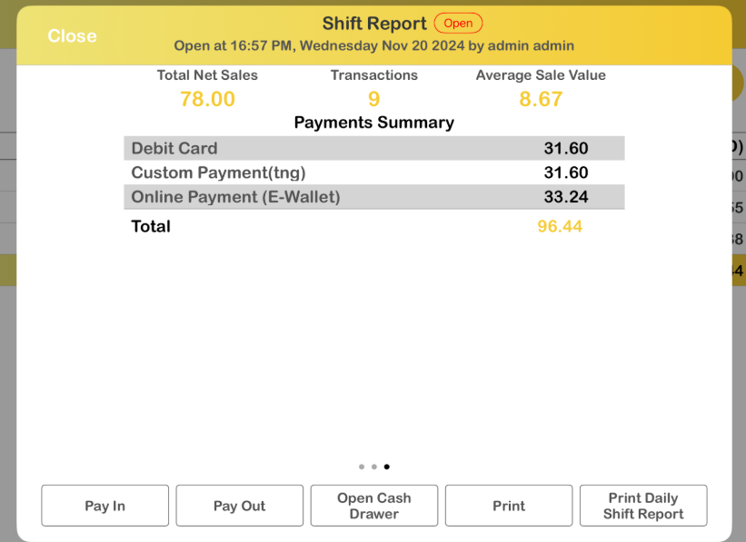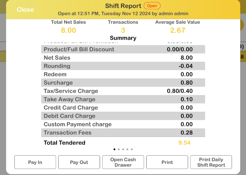 Shift Details on Web Admin