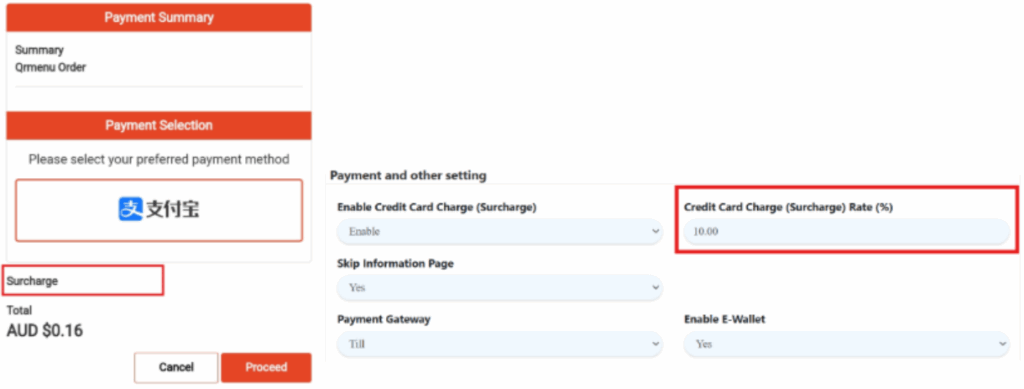 If the surcharge in Till wallet is disabled then the credit card charge in the “Setting” will be applied instead of surcharge in Till wallet and vice-versa.
