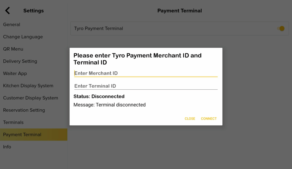 8. Then, enable Tyro Payment Terminal and enter the Tyro payment terminal ID (TID).