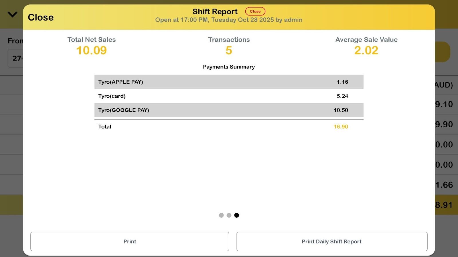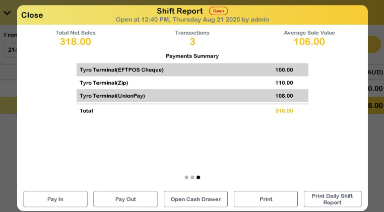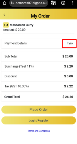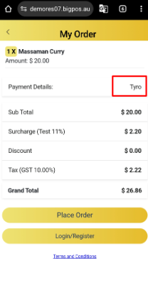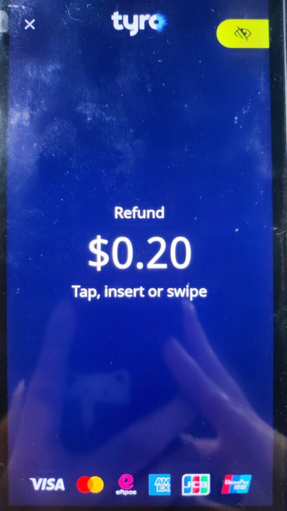 2. Then wait for the Tyro terminal device to pop up the payment amount and pay.