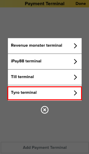 5. In SOK, click Add Payment Terminal and select Tyro terminal.