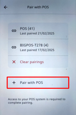 4. Click + Pair with POS and to ensure the pairing, please follow the steps set-up screen that is displayed