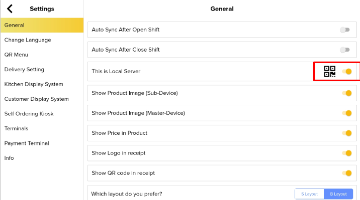 1. In BIGPOS PRO go to Settings, enable “This is Local Server”.