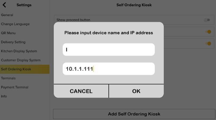 2. Select Self Ordering Kiosk and click on add self ordering kiosk.
