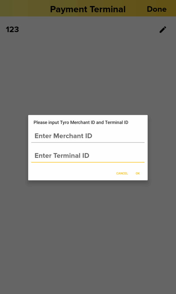 6. Enter Tyro merchant ID and terminal ID. Then, successfully paired.