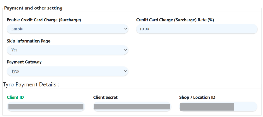 - Then, select “Tyro” payment gateway and enter the Client ID, Client Secret and Shop/Location ID.